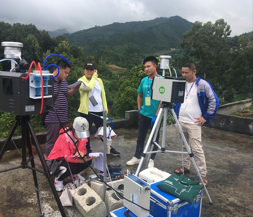 河池生态环境监测中心专业技术人员对新桂检测公司环境空气监测进行监督与核查