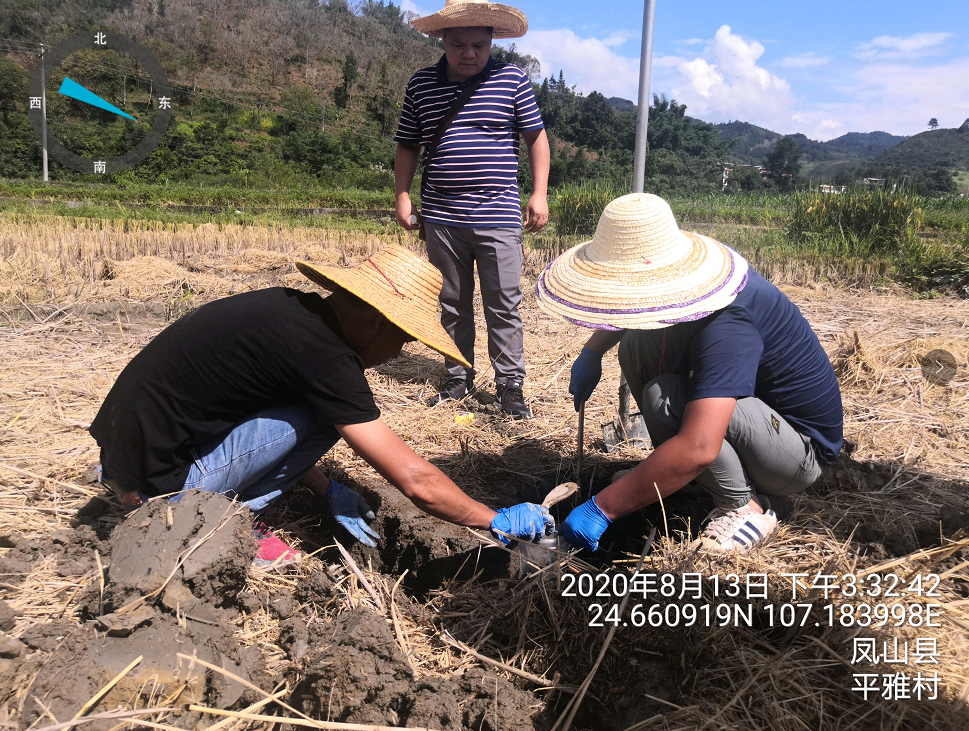 河池生态环境监测中心专业技术人员对新桂检测公司土壤样品采集进行监督与核查